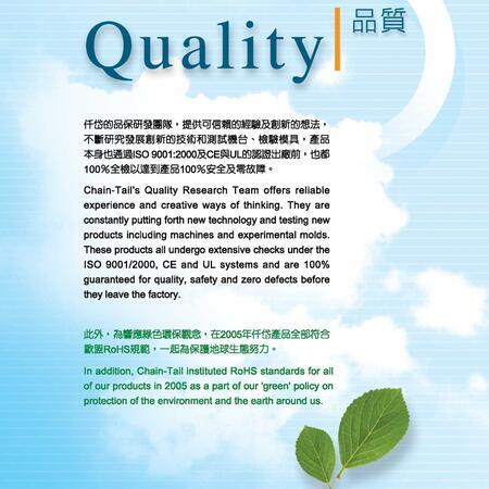 此外,為響應綠色環(huán)保觀念,在2005年仟岱產品全部符合歐盟ROHS規(guī)范,一起為保護地球生態(tài)努力。